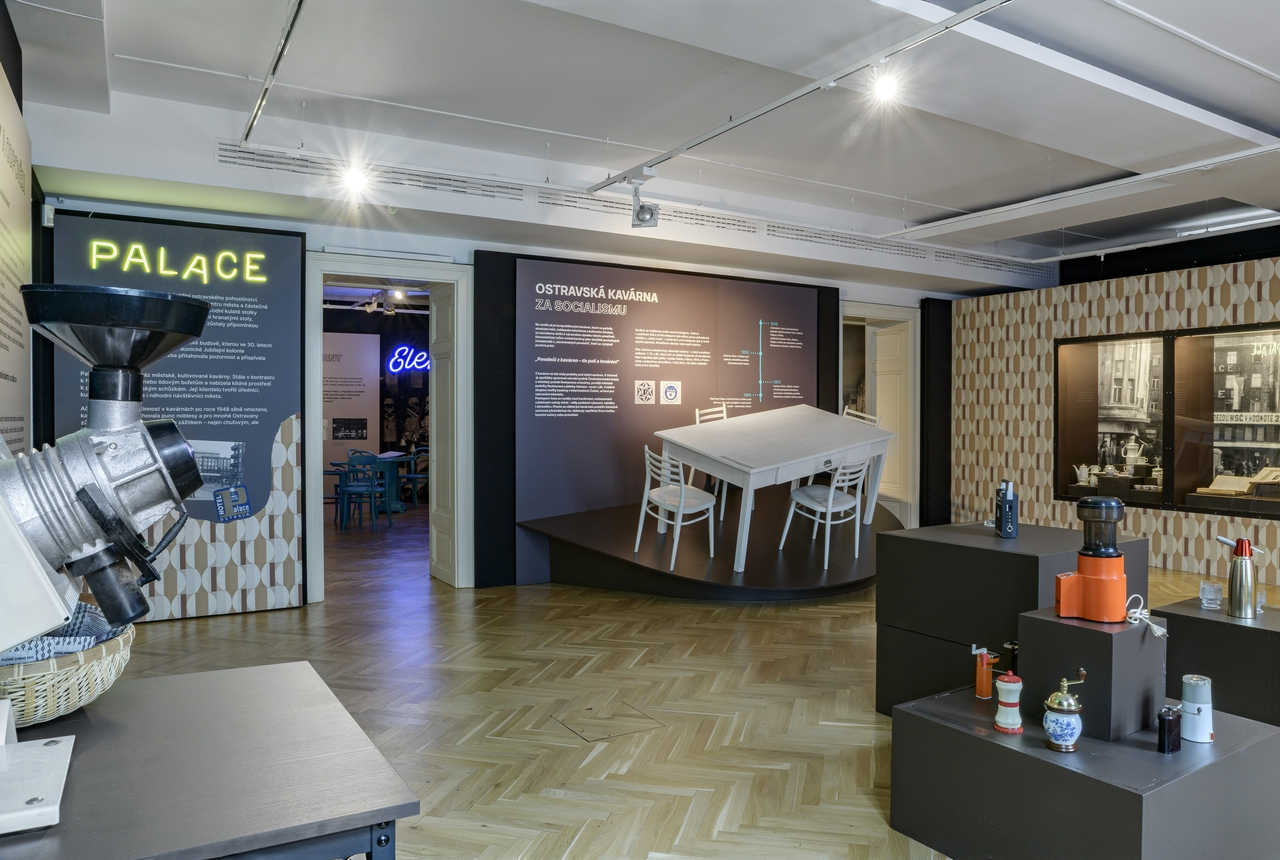 Výstava Ostravská kavárna provází historií kavárenského života v Ostravě od počátku 20. století až po současnost. Prostřednictvím příběhů čtyř výjimečných kaváren – Praha, Elektra, Fénix a Palace – je sledován vývoj ostravské kavárenské scény od jejího rozkvětu na počátku 20. století, přes útlum a proměny druhé poloviny 20. století, až po současnost. Tyto kavárny, vzniklé ve zlaté éře kavárenské Ostravy, sloužily veřejnosti ve všech těchto obdobích a staly se živými svědky proměn veřejného prostoru v dobách svobody i nesvobody. Výstava představuje nejen historii kaváren, ale i kávu jako rostlinu, nápoj a společenský fenomén.