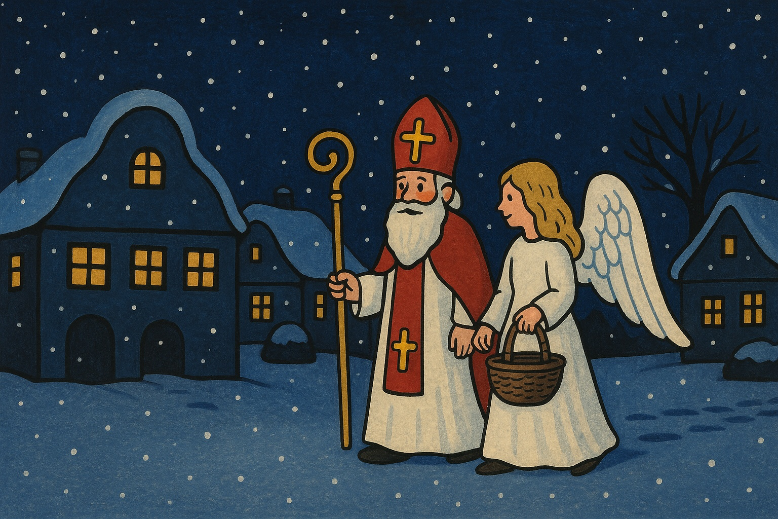 Pohádkové představení začíná chvílí, kdy se Mikuláš chystá mezi děti. Aby se však mohla otevřít nebeská brána, je potřeba speciální pověření podepsané kouzelným pírkem. To se však ztratilo v Pohádkově! Dva andělé se proto vydávají na dobrodružnou výpravu, při níž jim pomáhá Správce Pohádkova a podezření padá na čerty, skřítky i tajemného Hejhuláka – ale nikdo o pírku nic neví. Čas ubíhá a hrozí, že Mikuláš letos k dětem nedorazí. Podaří se pírko najít včas?